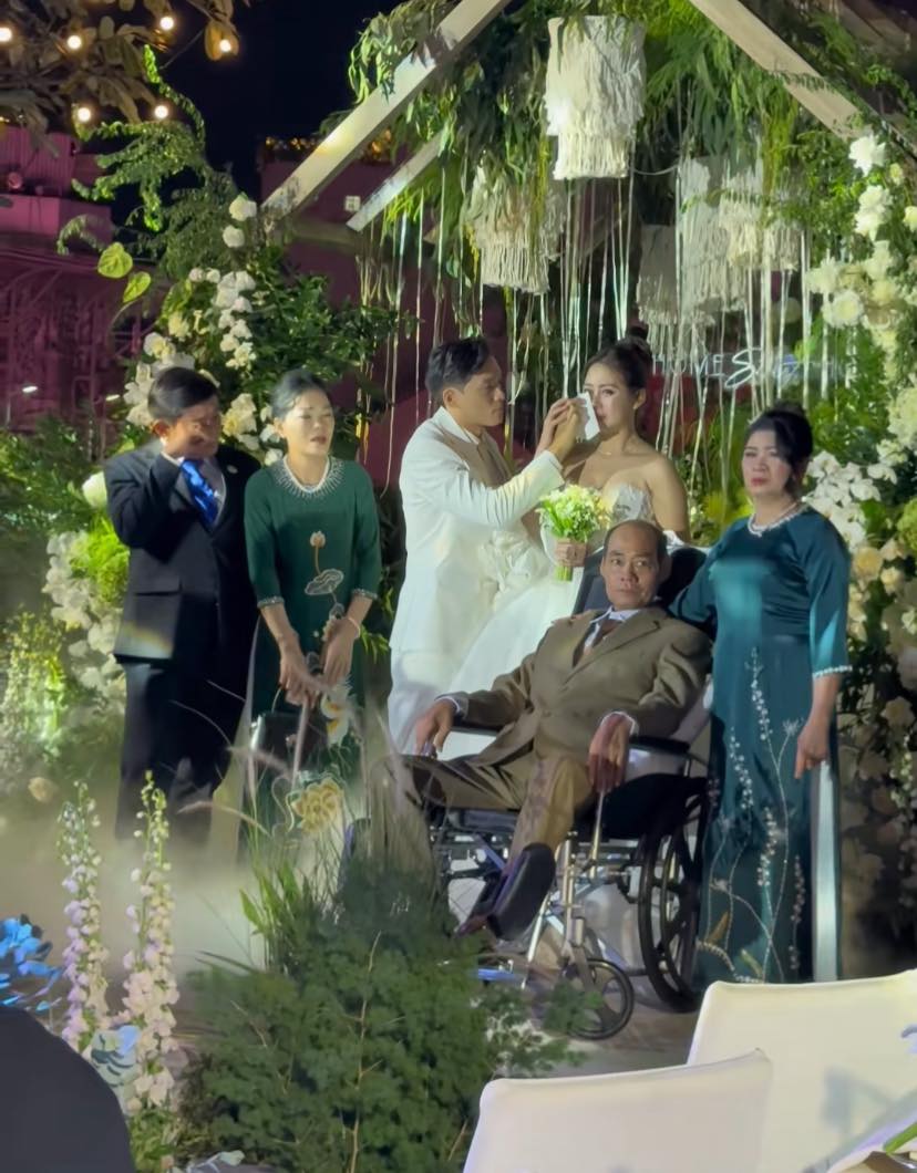 Trong đám cưới Việt Phương Thoa, có một khoảnh khắc đặc biệt xúc động đang được cư dân mạng chia sẻ. Đó là khi cô dâu khóc nức nở, đẩy xe lăn đưa bố lên sân khấu. Ngay cả bố mẹ Chí Thành cũng rơi nước mắt khi chứng kiến cảnh tượng này.
