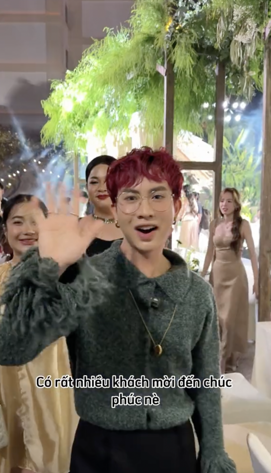 Theo đó, đám cưới quy tụ dàn khách mời khủng, có rất nhiều gương mặt quen thuộc trên MXH cũng như làng giải trí như Viên Vibi, Tun Phạm, Long Chun, vợ chồng Trương Mỹ Nhân - Phí Ngọc Hưng, Đức Anh, Gon Pink, Linh Barbie, DJ Mie, Ali Hoàng Dương, Phạm Đình Thái Ngân CiiN - Ngô Đình Nam, MisThy,...