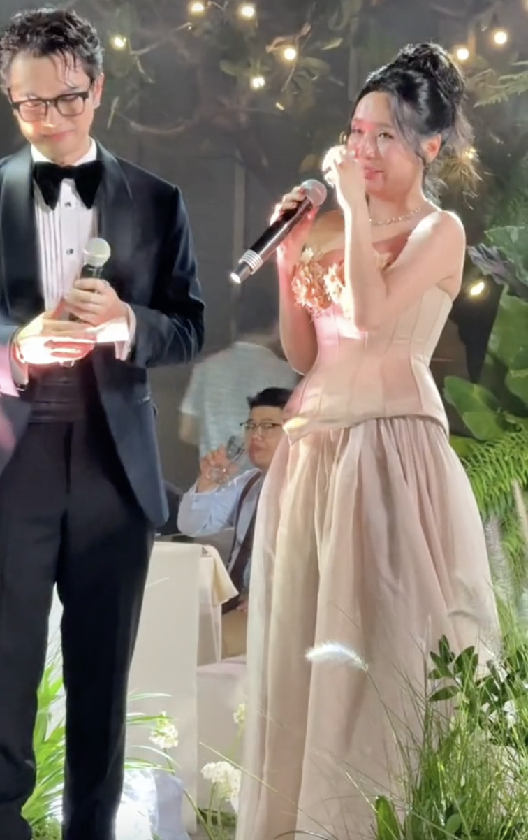 Ngoài ra, Viên Vibi - người chị thân thiết của Việt Phương Thoa cũng khóc hết nước mắt trong ngày cô em gái đi lấy chồng. Trên sân khấu đám cưới, Viên Vibi vừa khóc vừa chia sẻ với cô dâu chú rể và khách mời về cảm xúc của mình.
