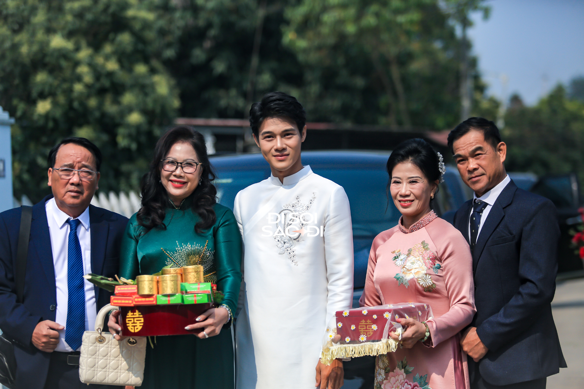 Không lâu sau đó, chú rể Tiến Phát cùng nhà trai mang sính lễ đến. Nam thiếu gia tự lái xế xịn đậm khí chất tổng tài. Tiến Phát mặc áo dài trắng đồng điệu với Quỳnh Lương, gây sốt bởi visual điển trai. Bên cạnh đó, dàn sính lễ mà Tiến Phát chuẩn bị để hỏi vợ cũng khiến nhiều người tò mò.