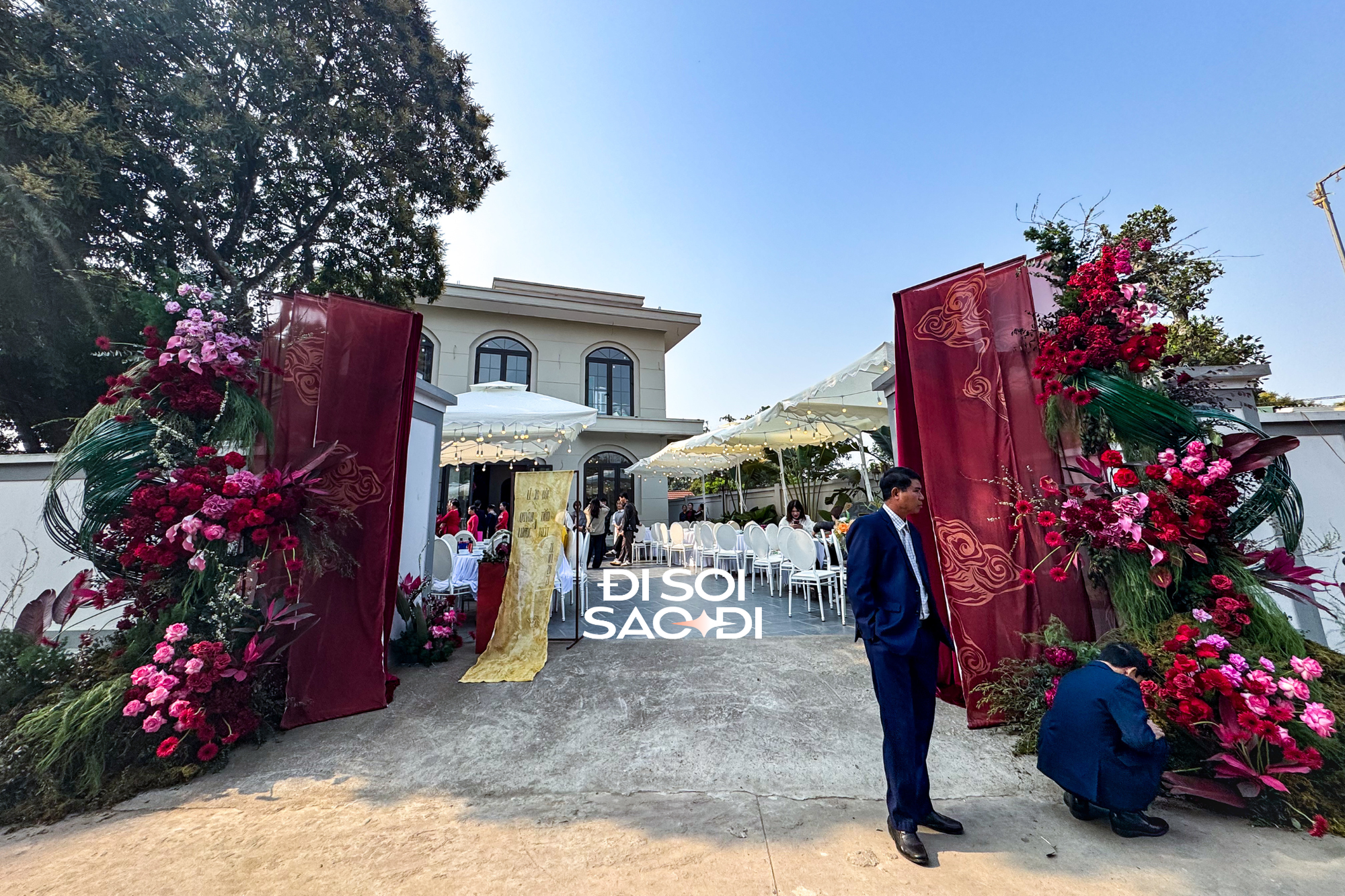 Sáng 21/3, lễ ăn hỏi của diễn viên Quỳnh Lương và bạn trai Tiến Phát diễn ra tại Phú Thọ - quê nhà của cô dâu. Ngay từ sớm, gia đình đàng gái đã rộn ràng chuẩn bị trang hoàng không gian để đón tiếp khách mời. Theo quan sát, bên trong nhà của Quỳnh Lương được dựng rạp, bàn ghế vô cùng chỉn chu. Bên trong khu làm lễ truyền thống ngập tràn hoa tươi, lấy màu đỏ làm chủ đạo, tạo nên không gian ấm áp nhưng không kém phần sang trọng.