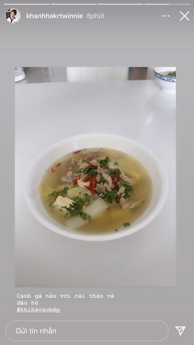 Cách đây không lâu, cô nàng khoe với dân mạng món canh gà nấu với cải thảo và đậu hũ.