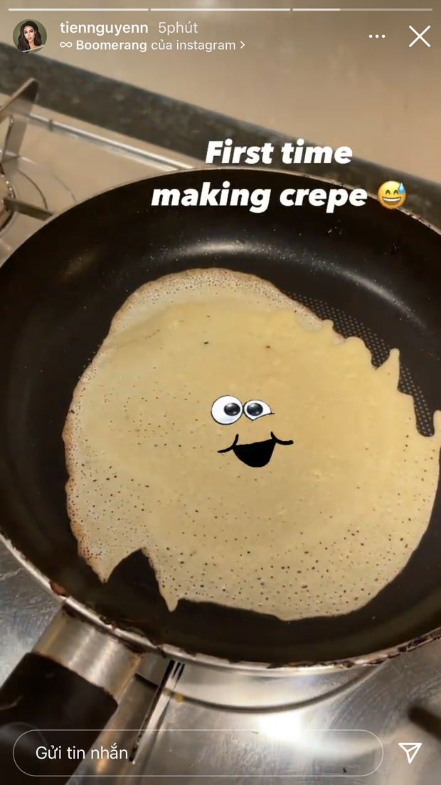 Hoặc 1 lần khác, không tiết lộ lần đầu làm crepe có thành công hay không nhưng Tiên Nguyễn lại hài hước gắn icon cho chiếc bánh của mình.