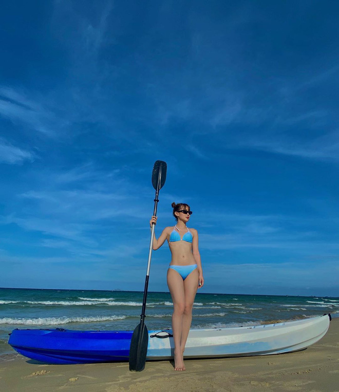Chăm chỉ tập tành để có body xịn sò, hot girl Trâm Anh cũng không thể nằm ngoài đường đua bikini.