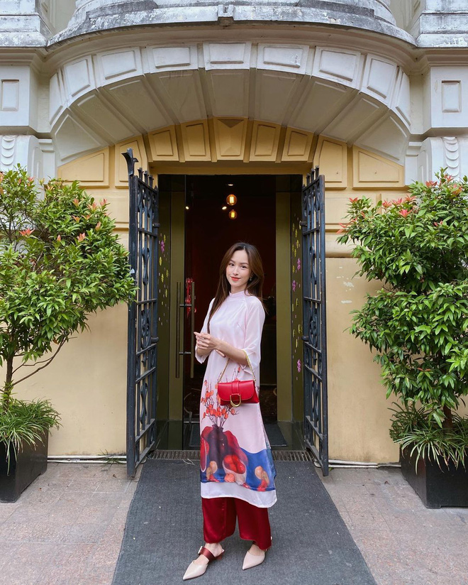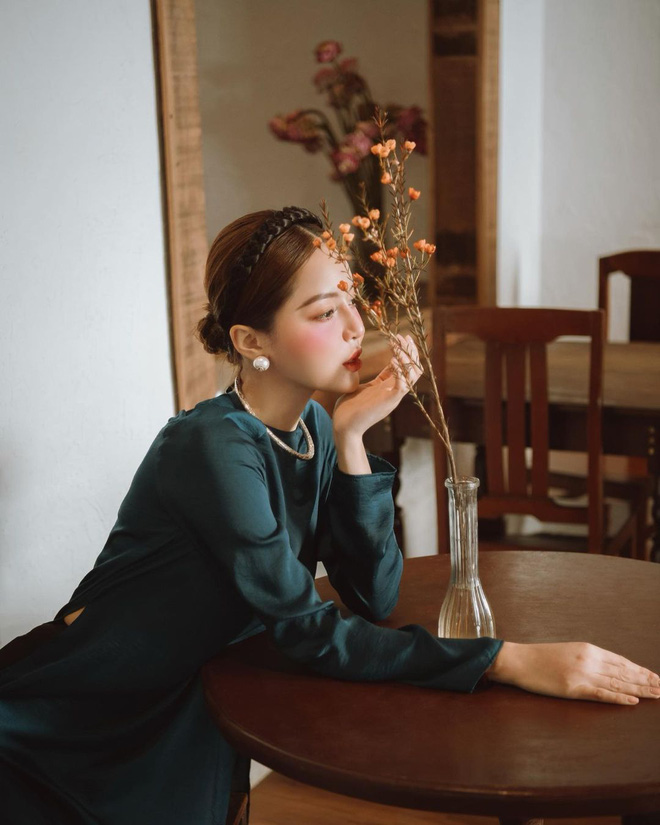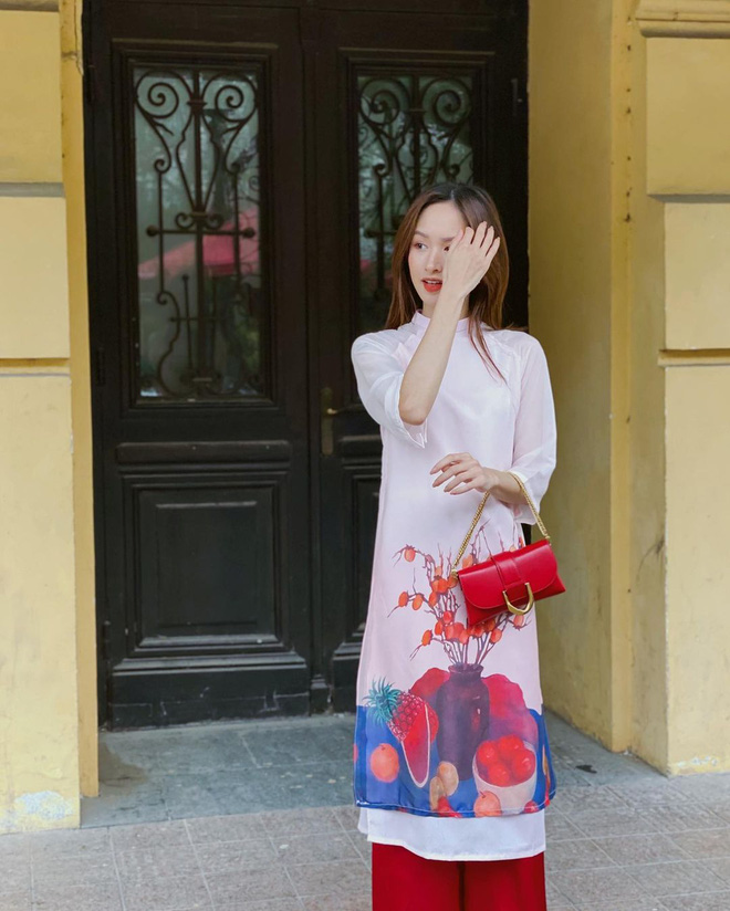 Từng được mệnh danh là nữ sinh mặc áo dài đẹp nhất nên không khó hiểu khi Nam Phương diện áo dài Tết cũng xinh hết phần người khác