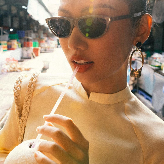 Không chỉ có cái tên lạ, mẫu lookbook Tống Khánh Linh còn giữ nguyên phong cách lạ khi diện áo dài