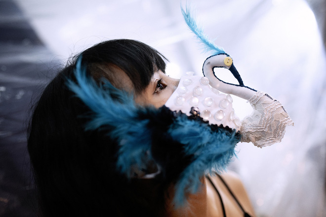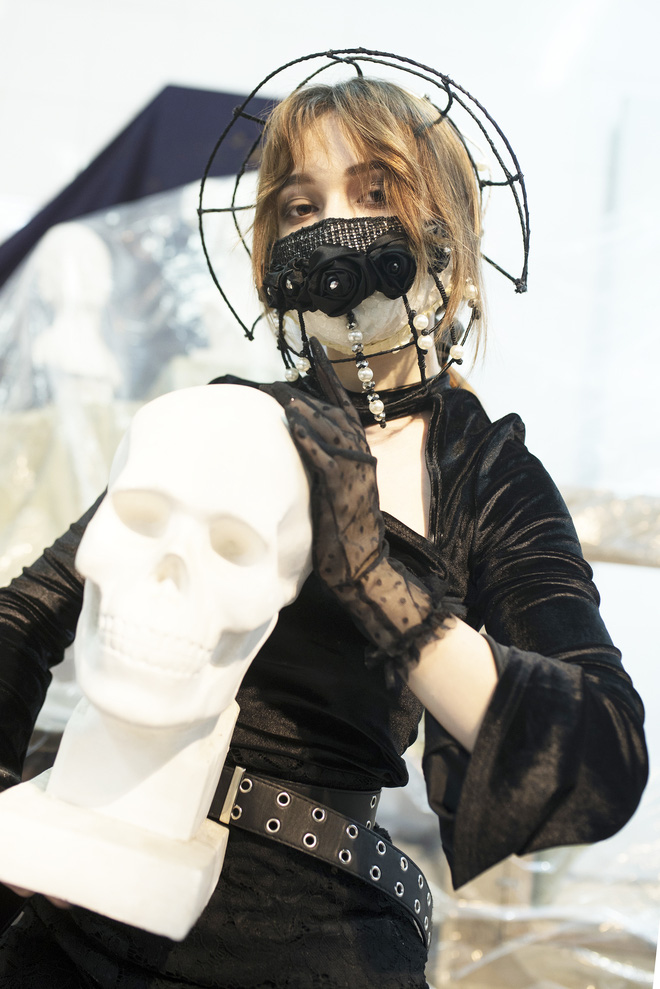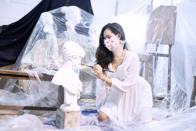 Sau đó, buổi chụp hình diễn ra tại xưởng Mỹ thuật với concept bối cảnh học mỹ thuật và những lớp màng nylon thể hiện đại dịch Covid-19 bao trùm khiến toàn xã hội cách ly, sinh viên không được đến trường học tập. Những chiếc khẩu trang này sẽ phục vụ mục đích trưng bày, thể hiện sự sáng tạo không ngừng của sinh viên ĐH Kiến trúc Hà Nội.