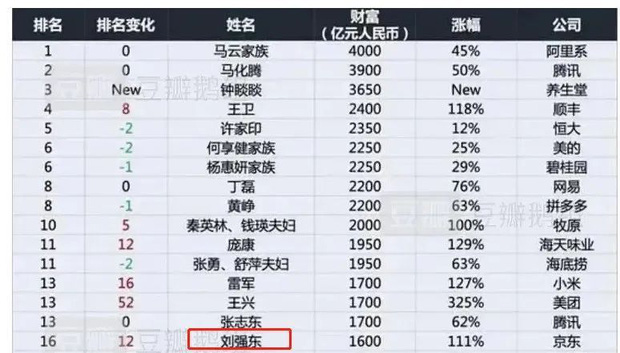 Điều thú vị hơn cả là trong danh sách những người giàu nhất Trung Quốc được tiết lộ đầu năm nay, hầu hết những người trong list đều dựa trên khối tài sản chung mà vợ chồng hoặc bố - con trai đồng sở hữu, tuy nhiên chỉ duy nhất tên Lưu Cường Đông xuất hiện một mình, khác hẳn với các năm trước