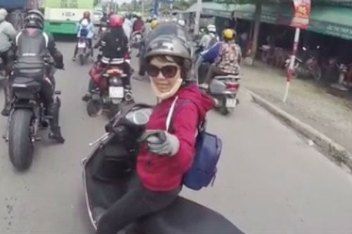 Khó chịu trước tiếng nẹt pô inh ỏi, một cô gái đi xe Lead đã vượt lên mắng tài xế này: “Tôi không biết là anh chạy xe gì, nhưng chạy xe phải có lương tâm và có não. Ít nhất, anh đừng làm phiền đến người khác". Bị nói vậy, anh chàng này không nói lẳng lặng phóng xe bỏ đi.