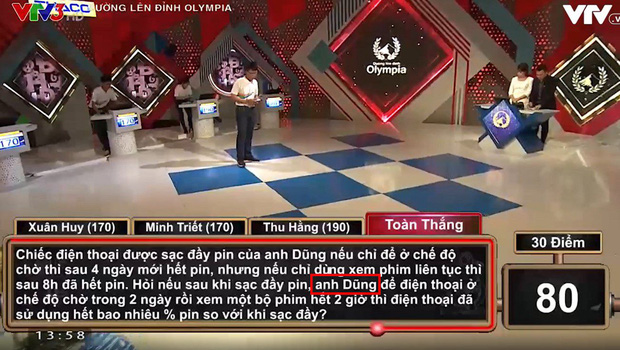 Mới đây, cộng đồng mạng lại được phen cười nghiêng ngả khi trang fanpage chính thức của Đường Lên Đỉnh Olympia đăng tải loạt câu hỏi ấn tượng trong chương trình với dòng chia sẻ: "Nhắn tìm anh Dũng của Đường lên đỉnh Olympia. Người rất say mê các con số, thích tập đếm, nhưng chưa biết đọc % pin điện thoại, đã thế còn "trấn lột" bi của Chi và Huy. Ai biết anh Dũng ở đâu xin comment dưới post này. Trân trọng cảm ơn!"