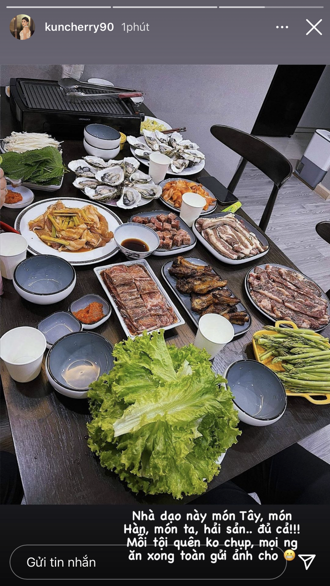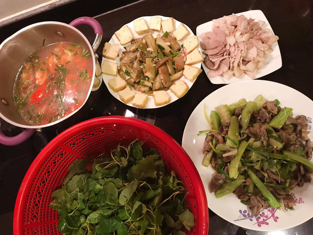 Không hay trổ tài bếp núc, hiếm lắm mới thấy MC Phí Linh khoe mâm cơm nhà do chính tay mình làm.