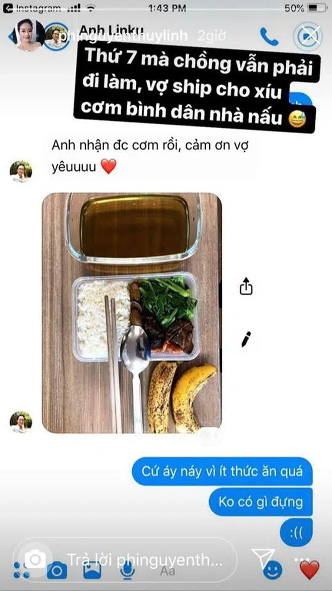 Ngoài cơm nhà, thỉnh thoảng Phí Linh còn làm cơm khi chồng phải đi làm. Hộp cơm đơn giản nhưng ông xã cô vẫn ăn sạch sành sanh.