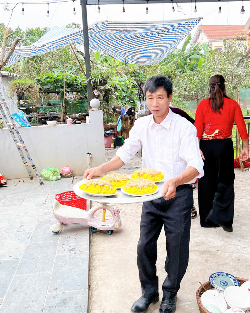 “Rạp được dựng tại sân nhà tôi. Các bác, các anh ai cũng khéo tay, tự mang đồ nghề đến làm rạp. Hội chị em thì vui vẻ chuẩn bị các tiết mục văn nghệ cho đêm tiệc”, anh Vọng nói.