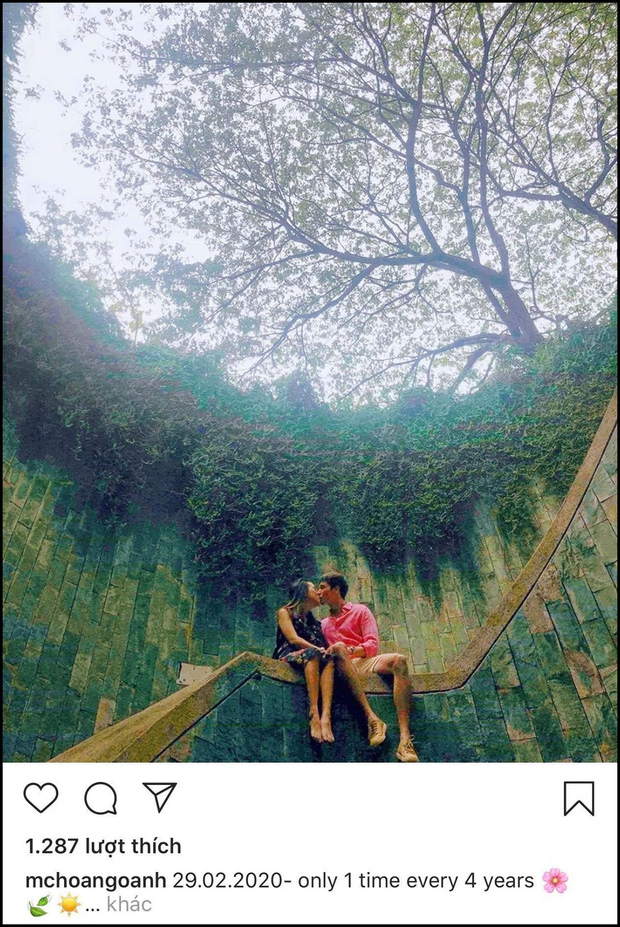 MC Hoàng Oanh đăng ảnh tình tứ với chồng Tây kèm caption mơ về ngôi nhà và những đứa trẻ: "29.02.2020 - only 1 time every 4 years. 4 năm sau mong cây vẫn xanh um tùm và có cả đàn con chạy nhảy vòng quanh".