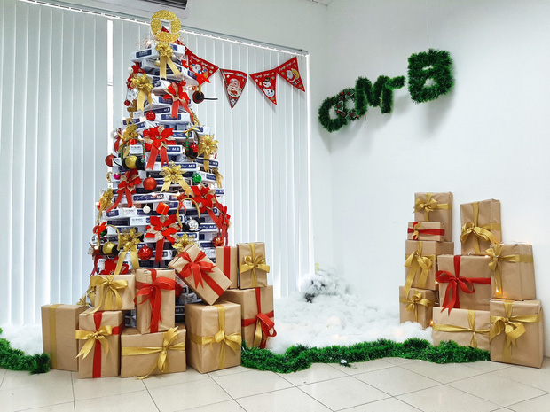 Bất kể công ty lớn công ty bé, đông nhân viên hay ít nhân viên, mỗi nơi đều có một concept trang trí cho riêng mình. Thậm chí, nhìn ảnh cư dân mạng khoe, người ta còn tưởng đang có cả một cuộc thi ngầm xem công ty ai trang trí Noel đẹp hơn, rực rỡ hơn nữa cơ.