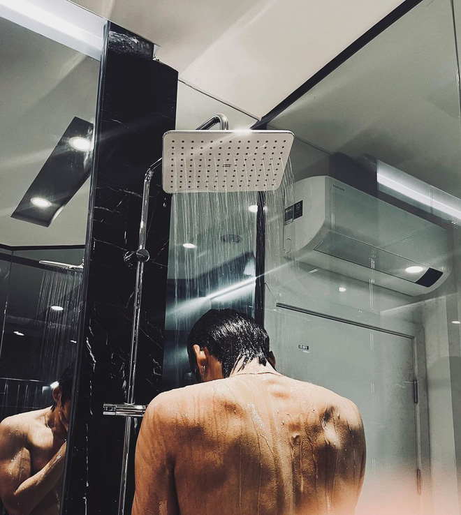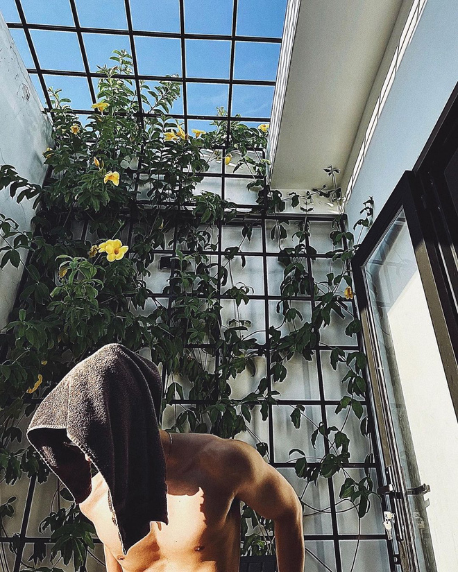 Là một người mẫu, đương nhiên "múi sầu riêng" của Đặng Trần Nhậm rất đáng đồng tiền bát gạo, kể cả trong những ngày ở nhà. Trai đẹp đứng selfie một tấm sương sương trước gương thôi cũng thấy rạo rực nữa.