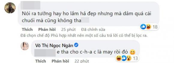 Dưới bình luận, nhiều người chỉ trích Ngân 98: "Tưởng vậy là hay, lớn đầu mà nói chuyện như đứa con nít". Ngay sau đó, Ngân 98 đáp trả: "Em kiếm tiền bằng người ta và cách sống em đẹp bằng ai không đã hãng lên đánh giá. Đừng sống tiêu cực đi khà khịa người khác không tốt cho mình".