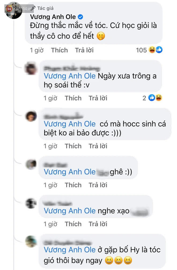 Trước những thắc mắc về việc thời học sinh nhuộm tóc khi tới trường, chính chủ ngay lập tức lên tiếng: "Đừng thắc mắc về tóc, cứ học giỏi là thầy cô cho hết."