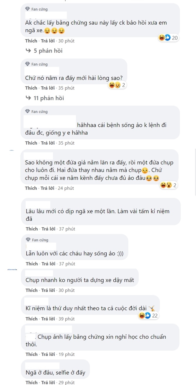 Thế nhưng sống ảo ngay sau khi gặp tai nạn giữa đường thì không phải ai cũng làm được. Lấy ví dụ như lúc vừa ngã xe, người bình thường sẽ phải xem xét bản thân và tài sản coi có bị hư hao, mất mát gì không... Thế nhưng, đối với hai cô gái trong bài viết sau thì có lẽ, sống ảo mới là chân ái, ngã xe lại càng là một sự kiện đặc biệt cần cho thiên hạ chiêm ngưỡng.