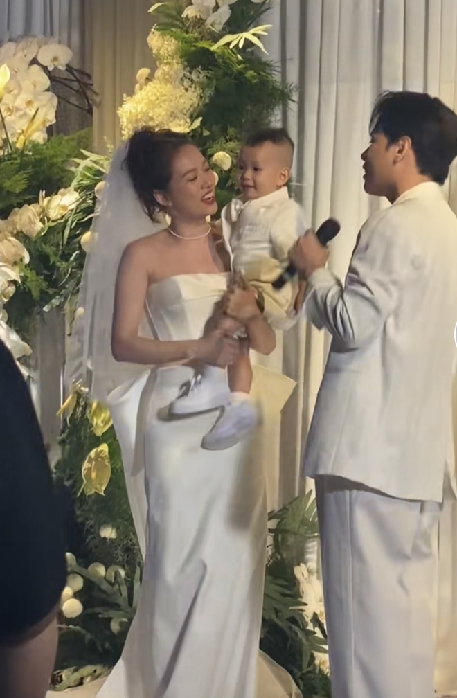 Do tiệc cưới diễn ra khá muộn nên con trai của JayKii và Mai Anh có vẻ mệt mỏi và mè nheo do buồn ngủ. Dù còn đang diện váy cô dâu, trang điểm lộng lẫy nhưng Mai Anh nhanh chóng ôm lấy con và đứng vào 1 góc để ru bé khiến quan khách chú ý. Thậm chí, cô dâu vừa chào tiễn bạn bè ra về nhưng tay vẫn liên tục dỗ dành nhóc tỳ khiến hội mẹ bỉm phải đồng cảm. Dân tình cho rằng đây sẽ là khoảnh khắc dễ thương, mang giá trị kỷ niệm của con trai nhà JayKii - Mai Anh trong ngày bố mẹ cưới nhau.
