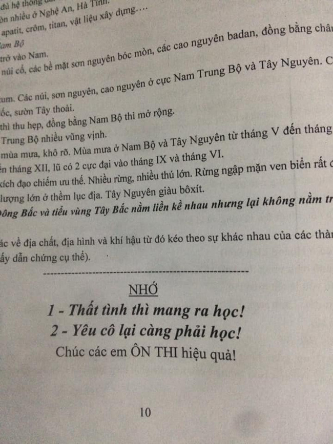 Cụ thể trong bài kiểm tra Lịch sử, giữa tờ đề thi chi chít câu hỏi, thầy bỗng bonus thêm cho học sinh một dòng động viên được viết hoa, in đậm vô cùng nổi bật: "Mệt chưa? Mệt thì nghỉ giải lao 15 phút nhé, rồi làm tiếp…Hihi, Hehe, Hoho!".