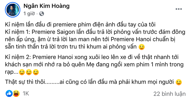 Kỉ niệm 2: Premiere Hanoi xong xuôi leo lên xe đi về thật nhanh tới khách sạn mới nhớ ra bỏ quên Mẹ đang ngồi xem phim 1 mình trong rạp...