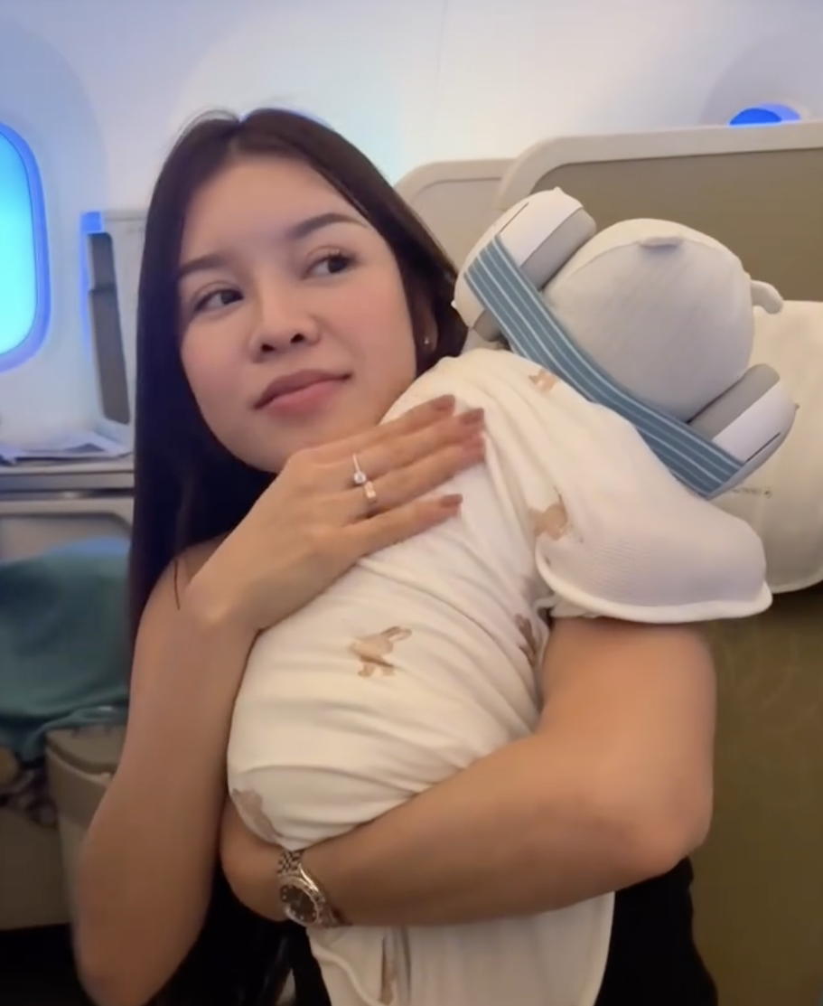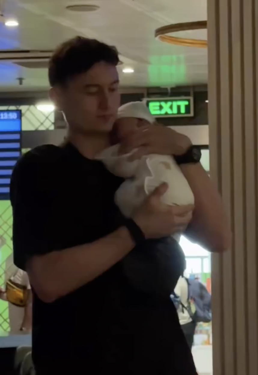 Hình ảnh được quay lại khi gia đình chàng cầu thủ có chuyển bay từ TP.HCM ra Hà Nội. Mặc dù em bé mới chỉ hơn một tháng nhưng do đặc thù công việc Văn Lâm đang thi đấu cho CLB Ninh Bình nên mẹ con Yến Xuân muốn ra Hà Nội để gần gũi với chồng.