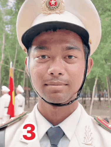 Đó là chiến sĩ Rơ Lan Hưng, sinh năm 2005, dân tộc Gia Rai và đến từ Gia Lai. Rơ Lan Hưng có mặt trong đội hình Khối nam Sĩ quan Công an TP.HCM.