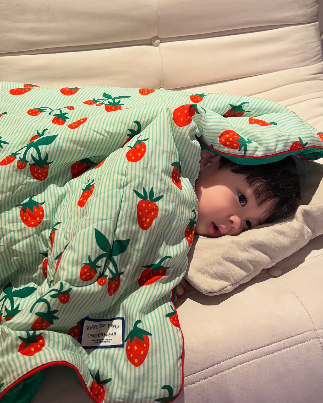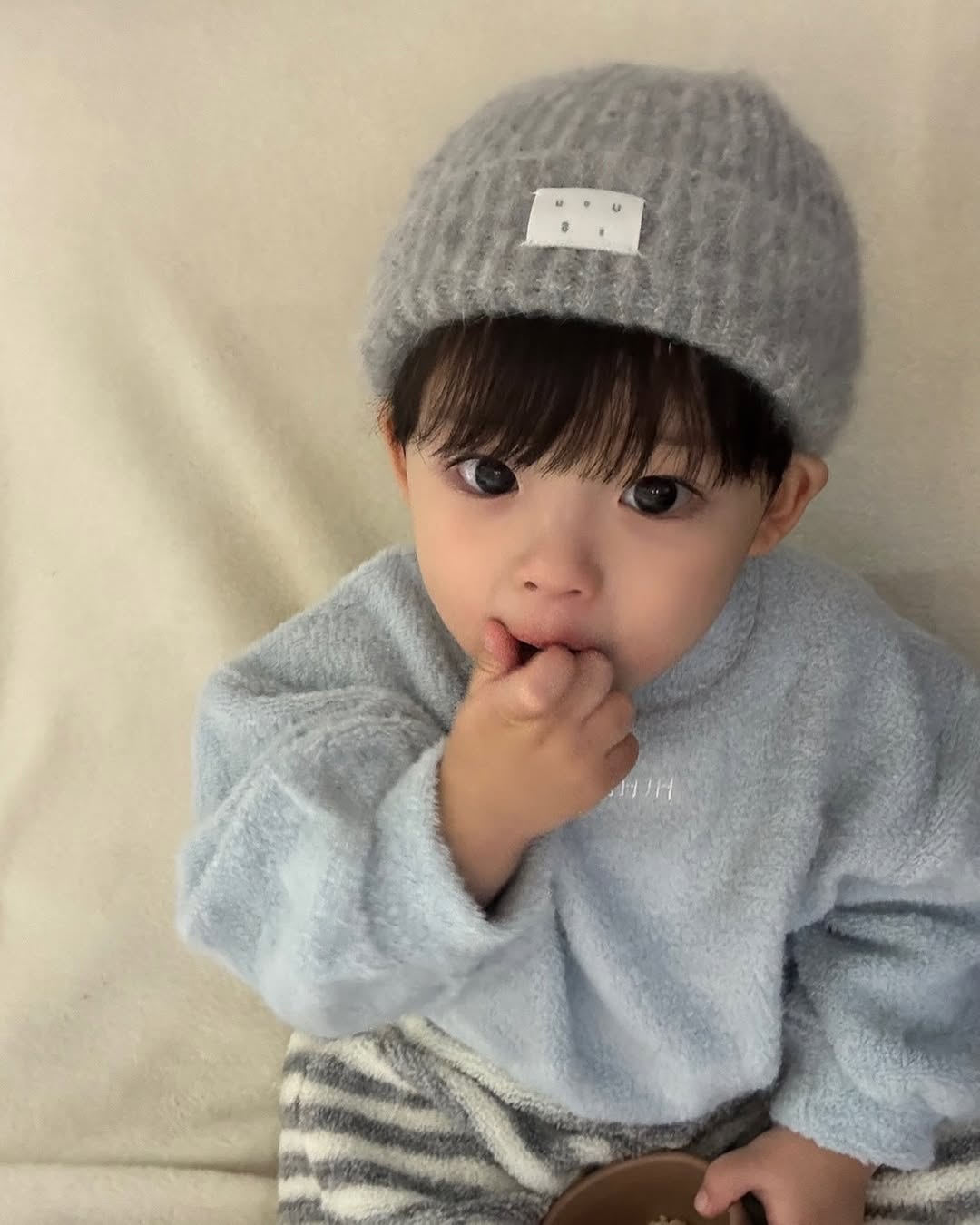 Lee Jin sở hữu khuôn mặt vô cùng đáng yêu, tròn trĩnh, dễ thương, cute cả khi khóc hay khi cười. Trong đoạn video, cậu bé dù mới 2 tuổi nhưng lúc nào cũng ngoan ngoãn, nghe lời người lớn. Hơn nữa, Lee Jin còn dễ ăn, dễ ngủ, nằm vài phút là đã vào giấc khiến hội mẹ bỉm thi nhau "xin vía".