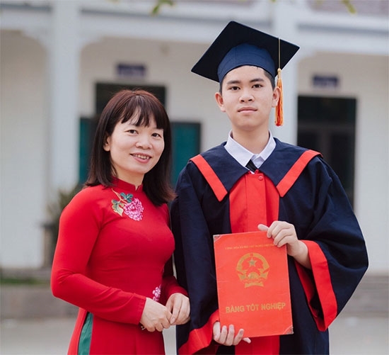 Chị Hà nói con trai hiền lành, tốt bụng, sẵn sàng bỏ cả buổi tối để hướng dẫn bạn bè học bài. Nhiều khi sốt ruột, chị nhắc con nhưng Vinh nói sẽ học thêm giờ để bù vào.