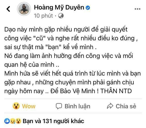 Mình hứa sẽ viết hết quá trình từ lúc mình và bạn gặp nhau, những chuyện mình phải gánh chịu ngày hôm nay... Để bảo vệ mình! Thân NTD".