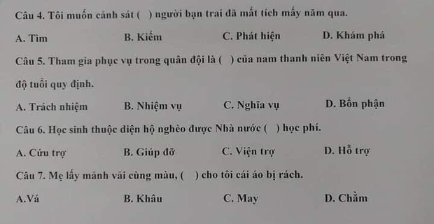 Phần ôn tập dưới dạng trắc nghiệm, câu hỏi cho 4 đáp án để lựa chọn với nghĩa gần như tương đương và khá sát nhau khiến nhiều người cũng phải đắn đo xem đâu mới thực sự là câu trả lời đúng. Quả thực nói tiếng Việt là ngôn ngữ phong phú bậc nhất cũng không hề sai phải không nào?