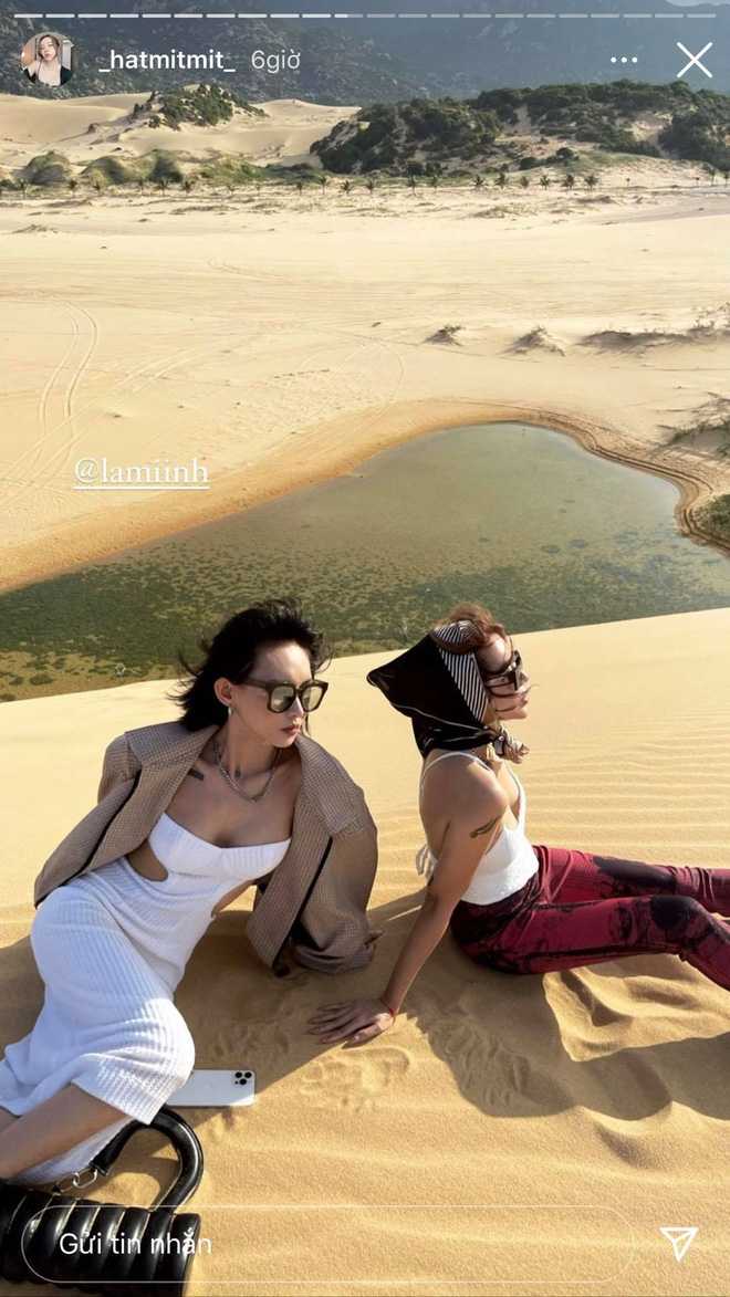 Mới đây, cặp đôi phía Decao lại để lộ chuyện đi du lịch cùng nhóm bạn thân đằng trai. Cụ thể, cặp đôi đã có chuyến đi Ninh Thuận cùng hot family Hạt Mít - Duy Nguyễn. Trong những bức hình check-in, Hạt Mít và Lâm Minh vui vẻ pose dáng cùng nhau, không quên tag đối phương vào. Decao dù không xuất hiện chung khung hình nhưng cũng có bức ảnh với background tương tự.