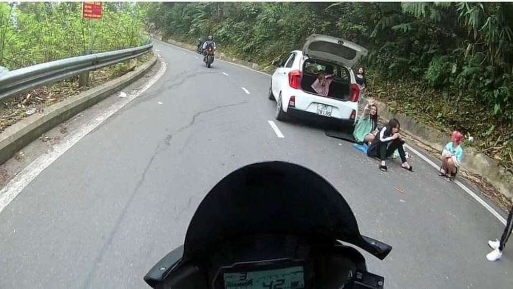 Mới đây, cộng đồng mạng đã lan truyền một bức ảnh ghi lại cảnh nhóm nam nữ có hành động dừng ô tô ngay trên khúc cua trên đường lên Ba Vì gây bức xúc. Có vẻ như chiếc xe ô tô đang gặp sự cố, buộc phải dừng giữa đường, nhưng những người trên xe lại thản nhiên trải khăn ra đường ngồi ăn, nghỉ ngơi. Cả nhóm người chiếm hết nửa lòng đường.