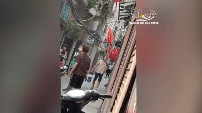 Người này cầm mũ bảo hiểm, đập liên tiếp vào đầu nam thanh niên. Đôi bên xảy ra xô xát, gây om sòm trong khu dân cư. Lúc này, một vài người đàn ông mới vào khuyên can nam thanh niên.