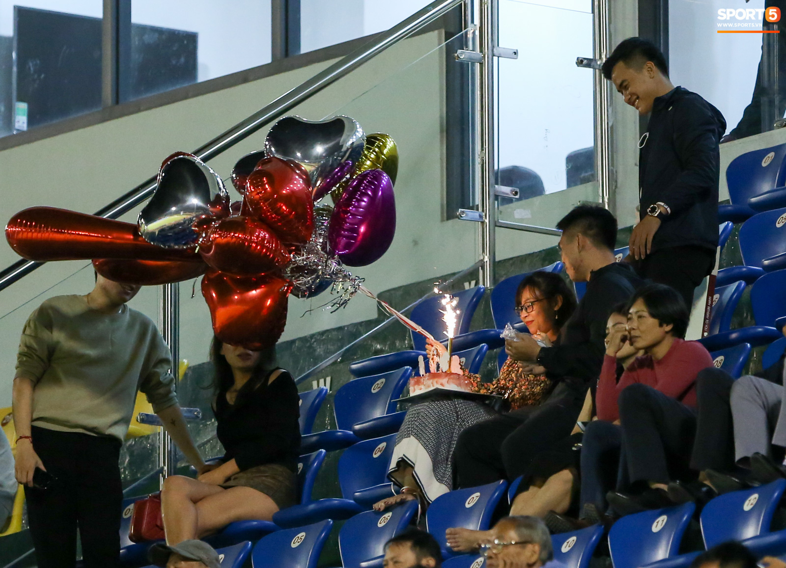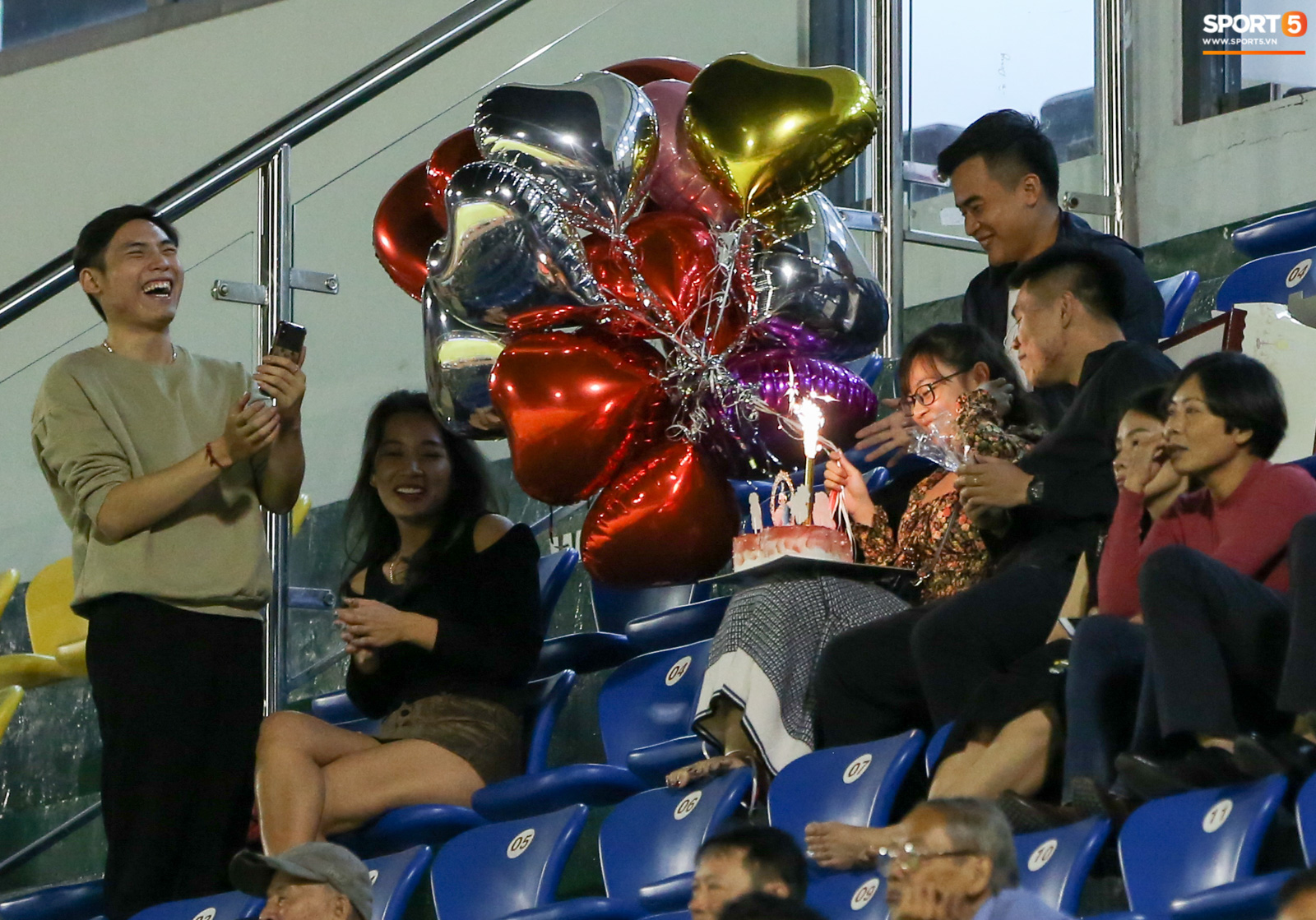 Trong trận đấu giữa Than Quảng Ninh và HAGL, trên khán đài A sân Cẩm Phả đã chứng kiến một cảnh tượng vô cùng tình cảm khi một cô gái được nhận bóng bay trái tim và bánh sinh nhật ngay giữa lúc trận đấu đang diễn ra.