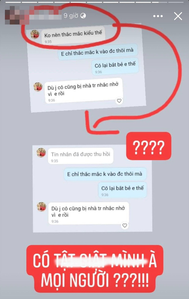 "Em chỉ thắc mắc không vào được thôi mà. Cô lại bắt bẻ em thế".