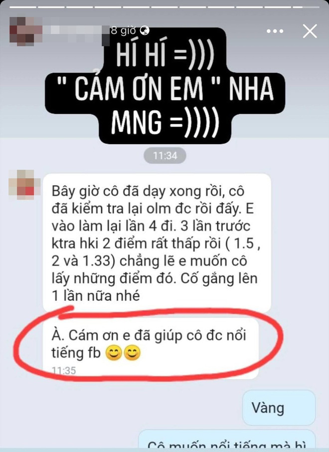 Nhưng khi đăng tải lên trang Facebook cá nhân thì nữ sinh lại cho rằng giáo viên dạy Hóa lại đang nói chuyện với mình với một thái độ mỉa mai, khịa người khác.
