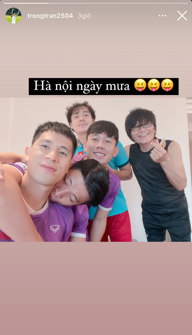 Những ngày này, bên cạnh việc F5 lại tinh thần cũng như sức khỏe, dàn cầu thủ còn rất chăm chỉ đăng tải ảnh ọt, status để cập nhật tình hình đến người hâm mộ. Trong số đó phải kể đến tấm check-in "Hà Nội ngày mưa" do Đình Trọng đăng tải.