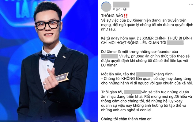 “DJ Ximer là một trong những DJ thuộc đội ngũ chúng tôi từ giai đoạn đầu (năm 2023). Tuy nhiên trong vòng 1 năm trở lại đây, DJ Ximer đã lui về phía sau để lo việc gia đình, con cái.”, chia sẻ từ B.L.