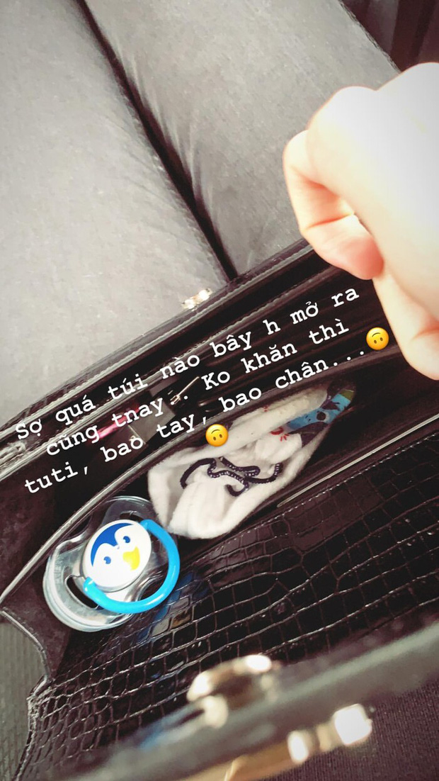 Thậm chí, không sợ mất form dáng của chiếc túi đắt tiền, người đẹp Lạng Sơn còn lấy chiếc túi này ra, làm đồ chơi, cho con ngồi vào chụp ảnh khoe lên mạng.