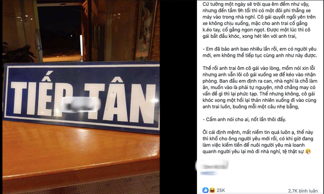 Ôi đời, mất niềm tin quá luôn ạ, thế này thì khổ cho ông người yêu mới rồi, có khi giờ đang làm việc kiếm tiền để nuôi người yêu mà loanh quanh người yêu lại mò đi nhà nghỉ, tệ thật sự!".