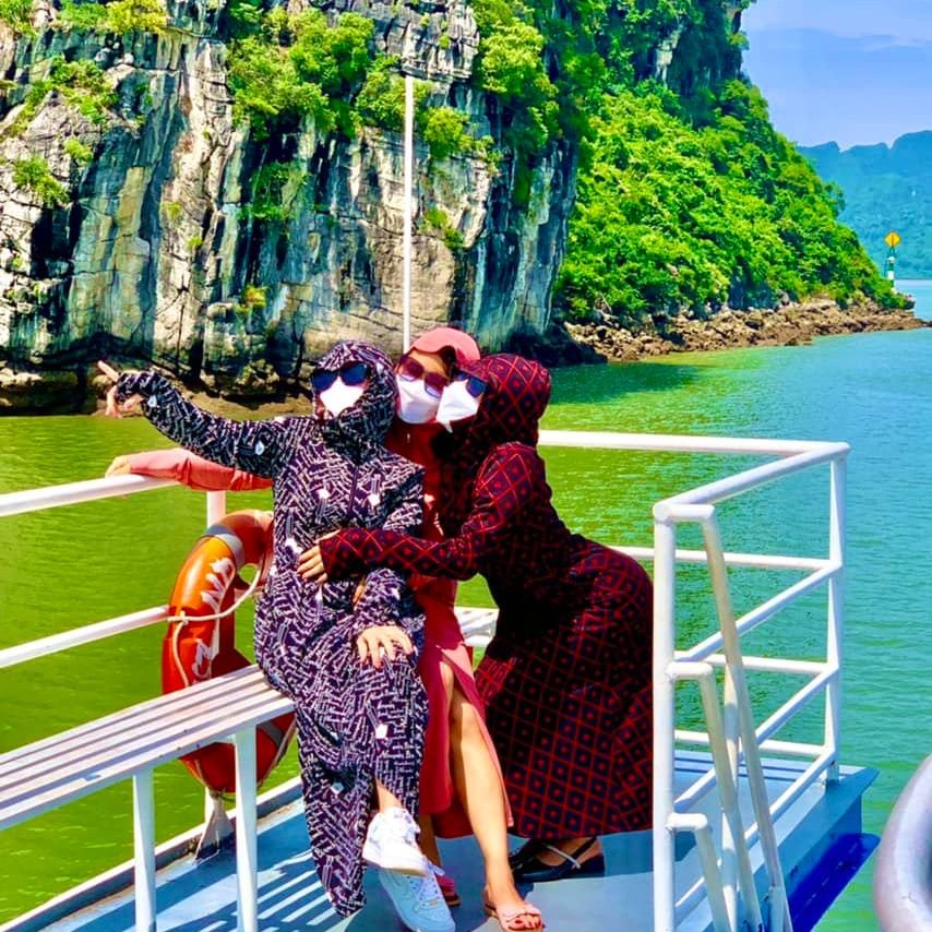 Mới đây, trong một fanpage nhóm bạn thân đã đăng tải bộ ảnh du lịch hè của mình trong trang phục áo chống nắng kín mít hệt như "nữ ninja".