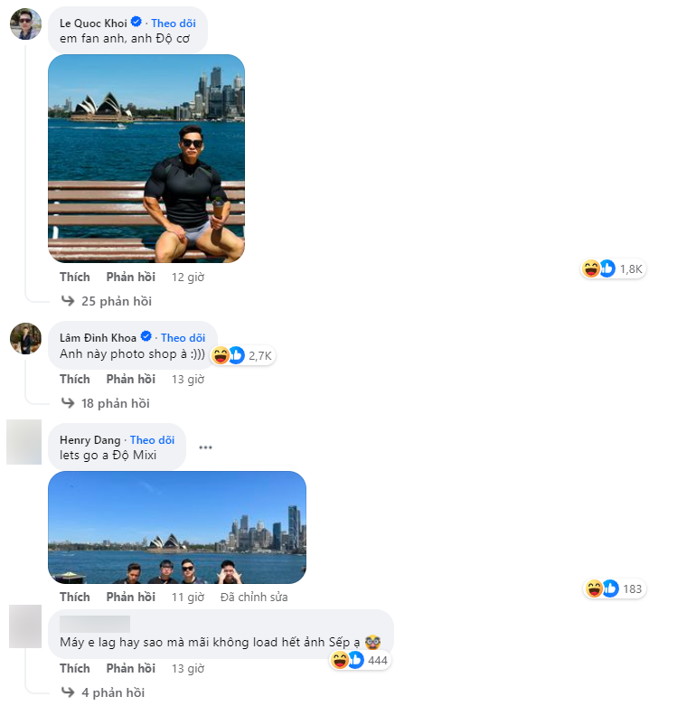 Nhưng hóa ra, tất cả chỉ là... ảnh ghép. Có nhiều member thừa nhận, họ bấm vào ảnh và chờ load hết nhưng hóa ra bức ảnh chỉ cắt nửa người của nam streamer. Có thể, Độ Mixi đã sử dụng một phông nền có hình ảnh của nhà hát con sò chứ thực ra anh chàng chưa đi được đến đâu. Tuy nhiên, bài đăng của nam streamer vẫn đạt được lượt tương tác cực khủng với tận hơn 215k lượt react chỉ sau hơn 13 tiếng đăng tải, cho thấy sức ảnh hưởng rất lớn của nam streamer người Tày.