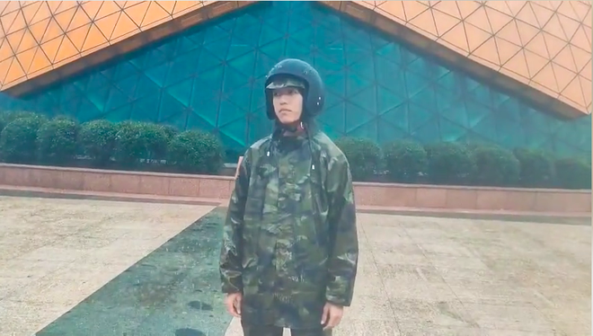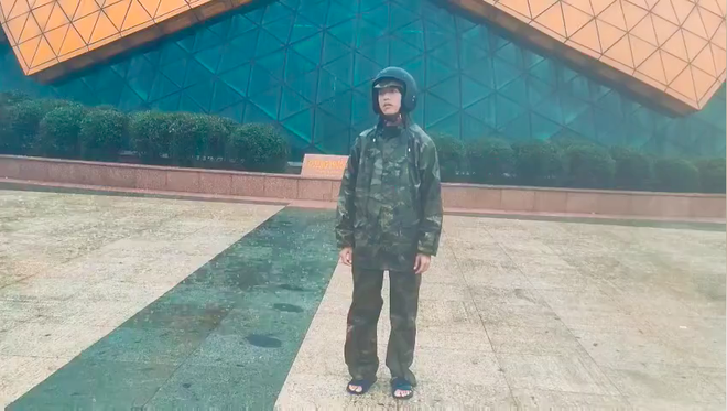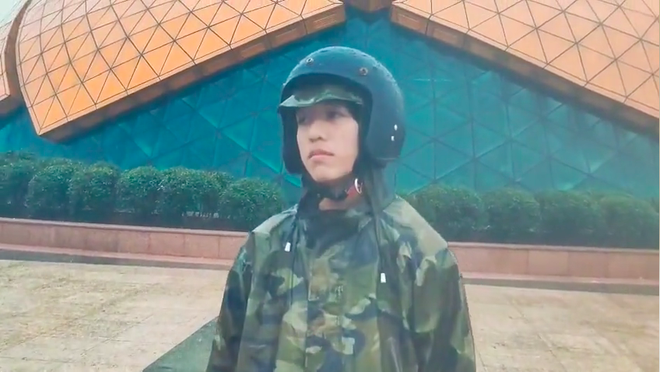 Thế nhưng câu "đời không như là mơ" quả đúng khi chỉ vài giây sau, người xem được dịp "cười ra nước mắt" trước cảnh anh chàng mặc nguyên bộ áo mưa, chân mang dép lê, đầu đội mũ bảo hiểm đứng giữa trời mưa to gió lớn. Phía sau là background toà nhà hình bông hoa dã quỳ "huyền thoại" ở quảng trường Lâm Viên.