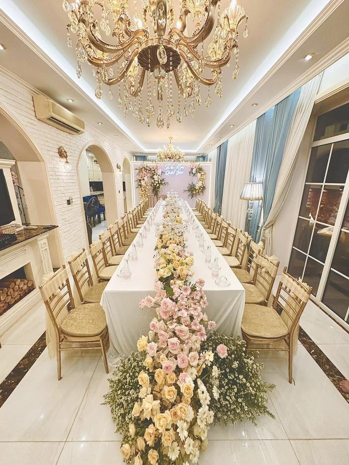 Thậm chí, biệt phủ tiền tỉ của gia đình cô cũng là trang trí tổ chức gia tiên. Theo hình ảnh cô đăng tải lên mạng xã hội, không gian biệt thự trước ngày rước dâu đều được đầu tư cắm hoa tươi từ trong ra ngoài sang trọng, chẳng kém gì đám cưới của người nổi tiếng.