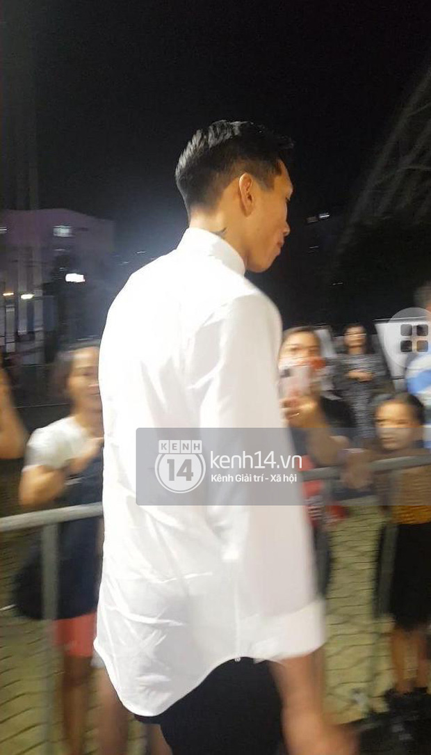 Còn đêm chung kết thì sao? Dân tình đang mải đoán già đoán non xem Văn Hậu có động thái gì không thì nhanh như chớp Đoàn Văn Hậu diện áo trắng soái ca lướt nhanh qua ống kính. Các fan không phải đợi động thái nhá, anh đây đến xem và cổ vũ tình tin đồn công khai luôn cho biết mặt.