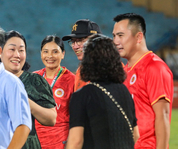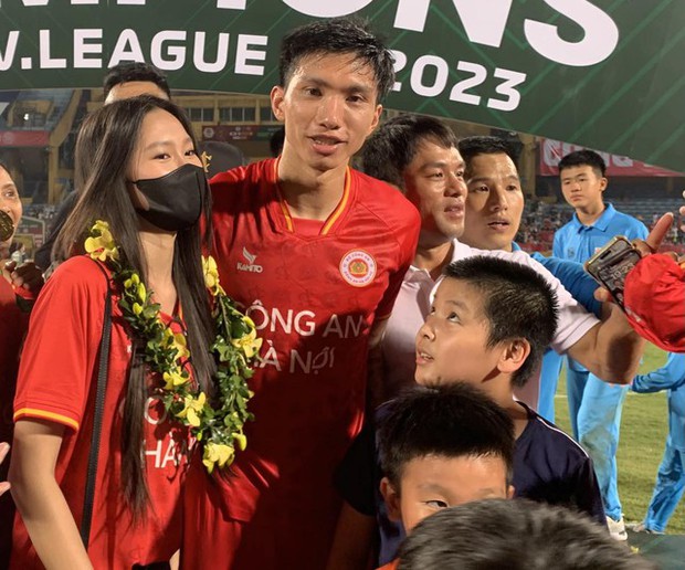 Doãn Hải My xuất hiện cùng bố mẹ Đoàn Văn Hậu ăn mừng chức vô địch V.League 2023.