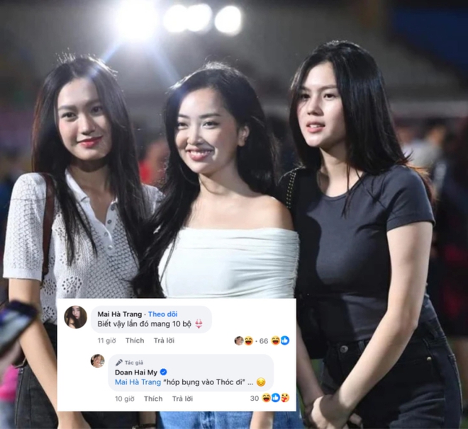 Hai nàng WAG có mối quan hệ rất thân thiết, hội bạn thân là vợ cầu thủ còn có Ngô Tố Uyên - vợ Thành Chung. Hải My và Hà Trang chơi thân và cũng cùng đang mang thai "bé rồng". Dân tình cũng rất háo hức chờ cảnh hội WAGs và cầu thủ đi chơi dẫn theo các nhóc tỳ đáng yêu.