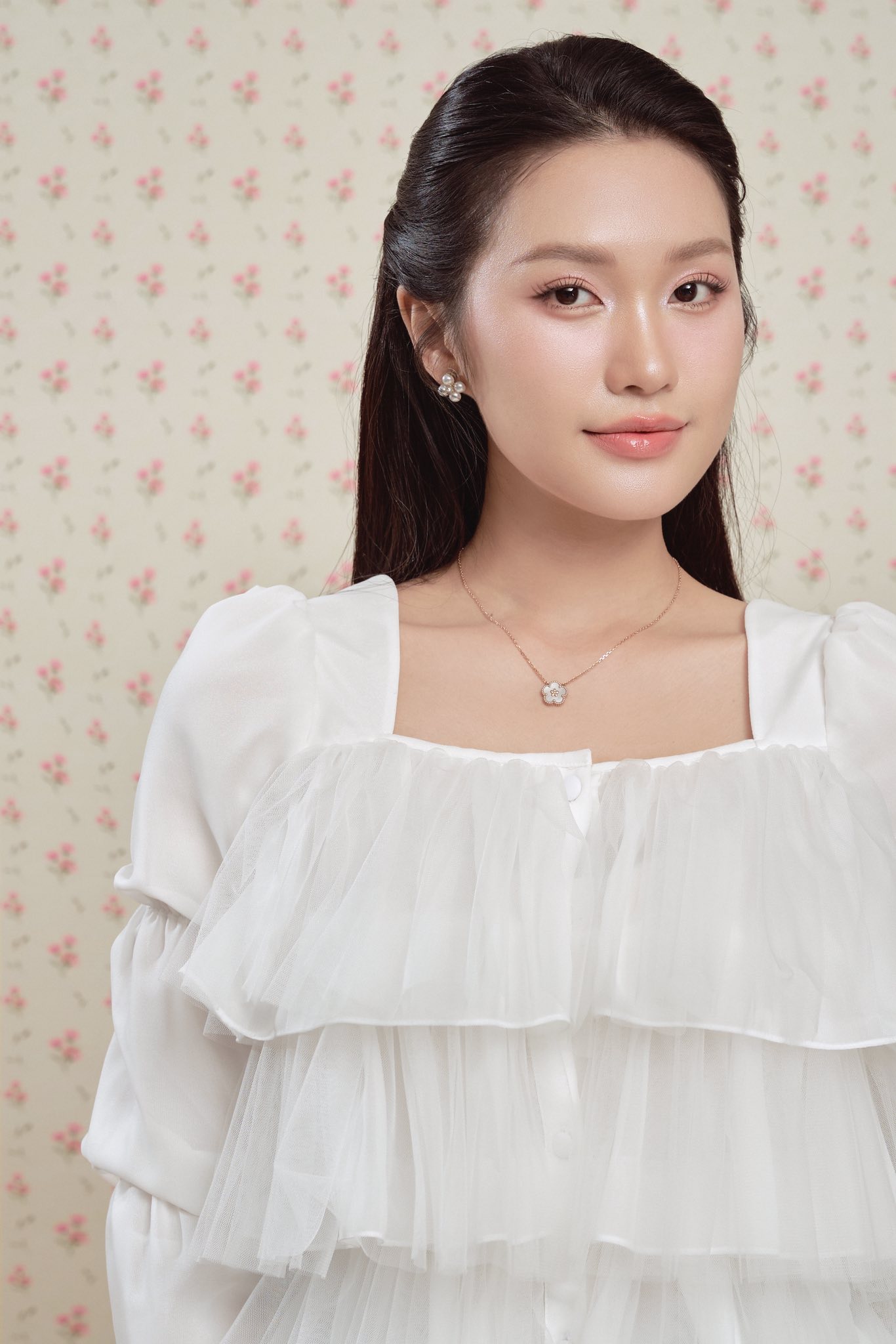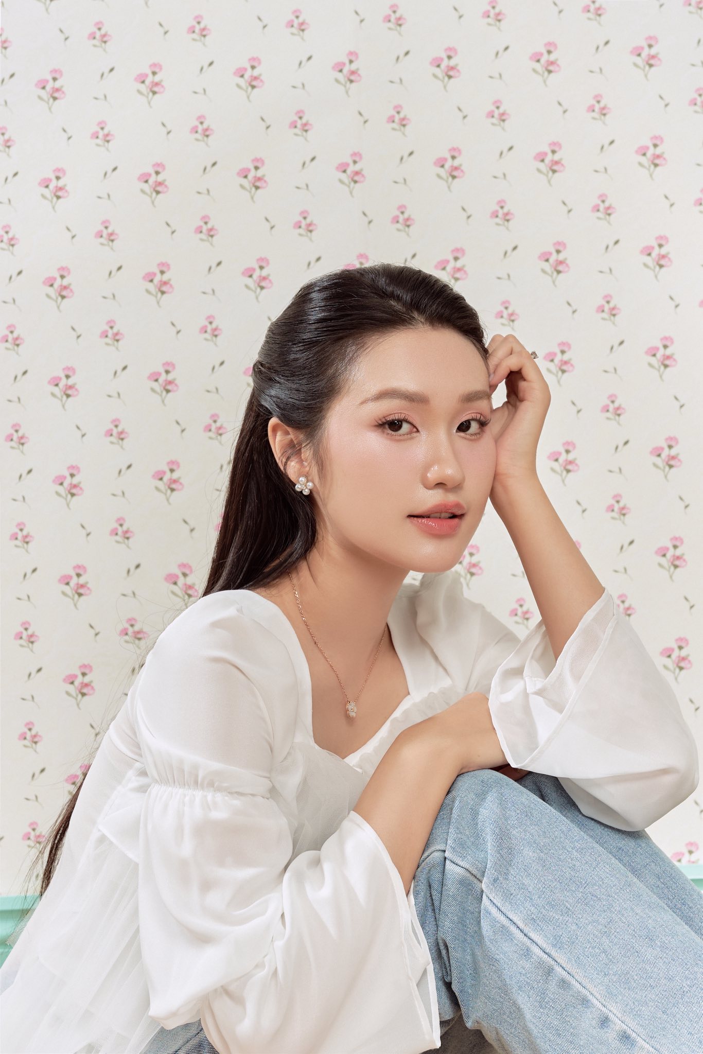 Điều đáng chú ý là vẻ đẹp của Hải My không còn dừng lại ở nét trong sáng, ngây thơ thuở đôi mươi, mà nay đã mang màu sắc của sự chín chắn, sâu sắc đầy cuốn hút, khiến người đối diện không thể rời mắt.